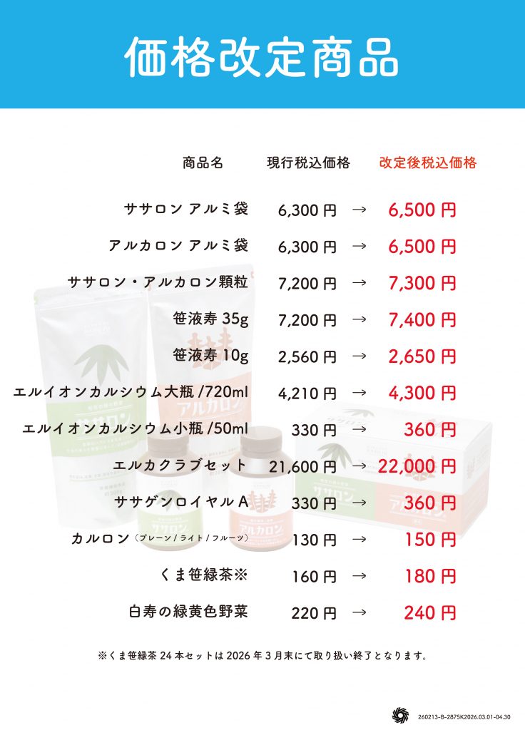 このたび、原材料費の高騰に伴い、一部商品価格を改定させていただくこととなりました。