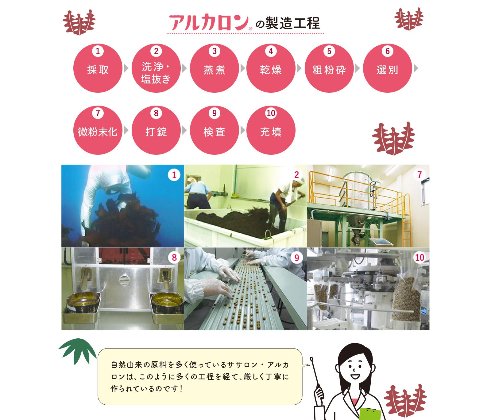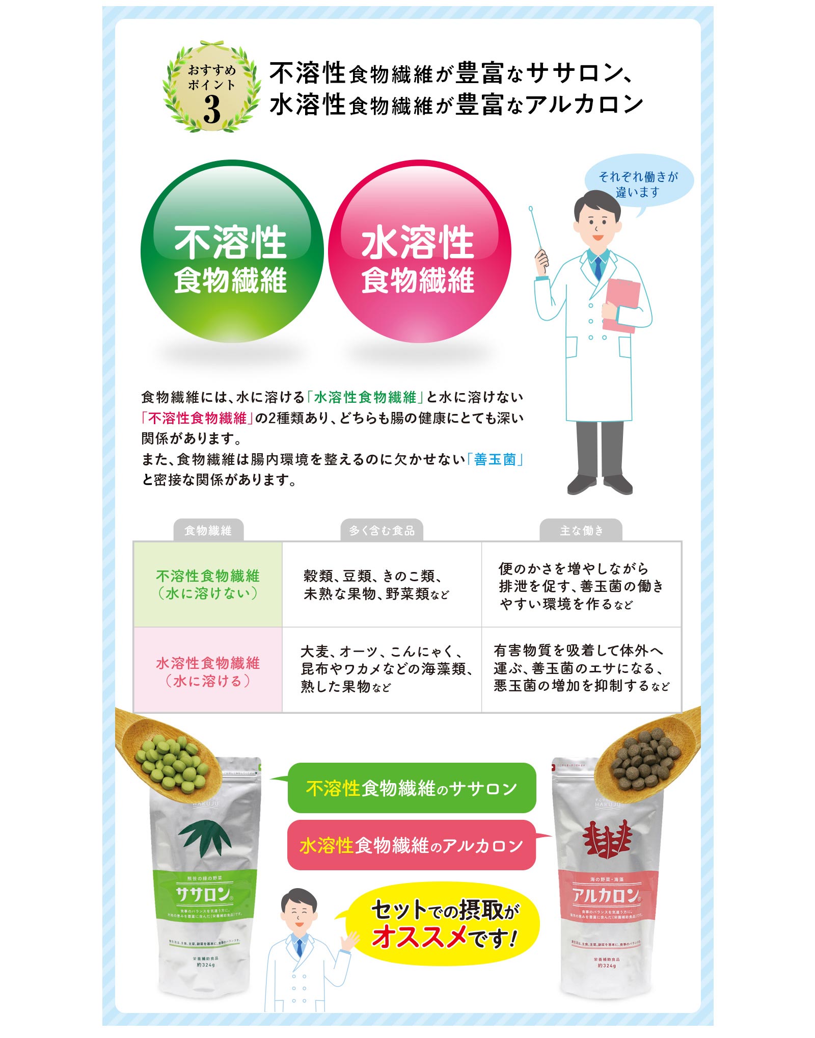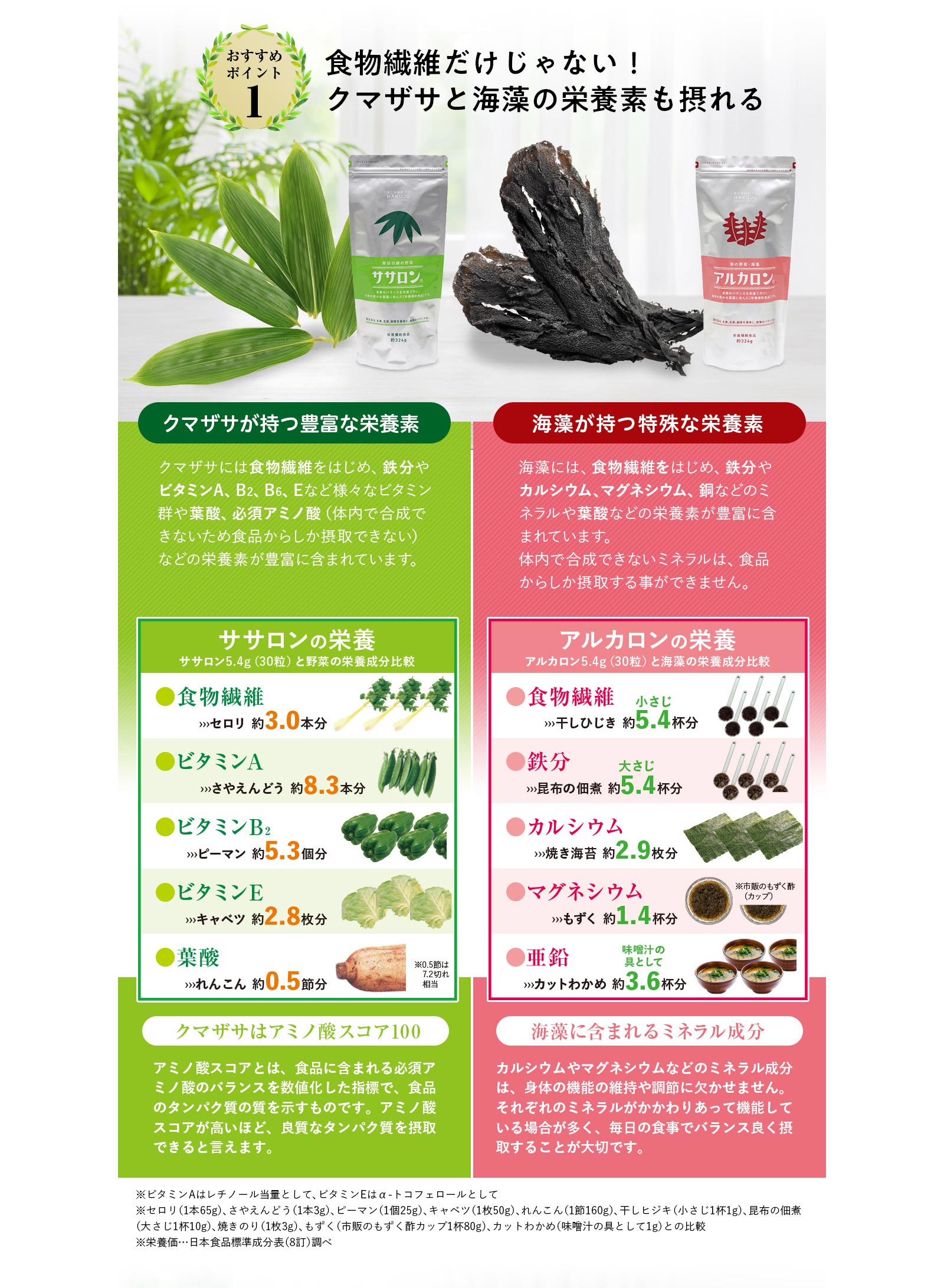 | 原材料 | 海藻混合粉末(カジメ、ヒジキ、ワカメ、アラメ、のり)、難消化性デキストリン、ガラクトオリゴ糖、デンプン分解物、食用精製加工油脂(硬化油)、でん粉、昆布粉末 | |