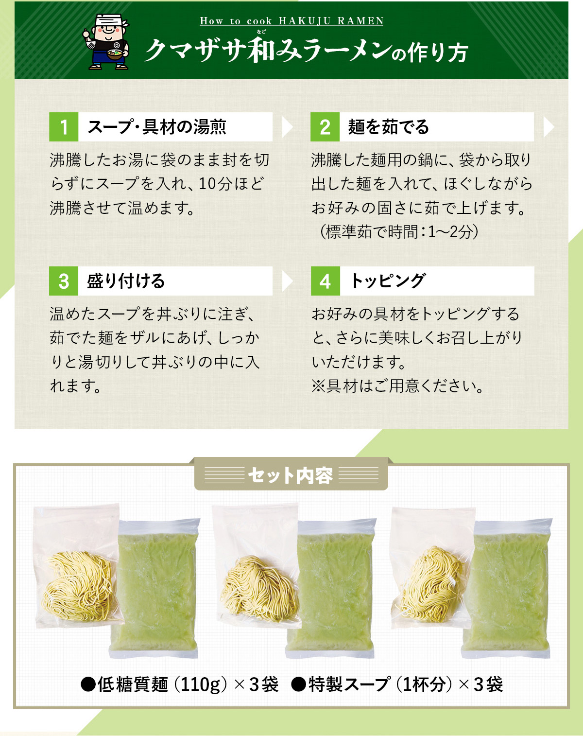 | 商品名 | クマザサ和みラーメン | |