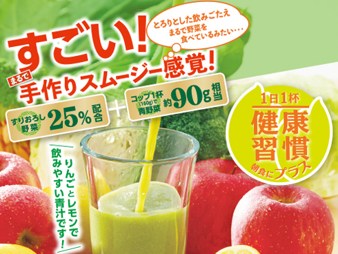 青野菜をピューレ状にして約25%も配合、とろ~りとした飲みごたえ