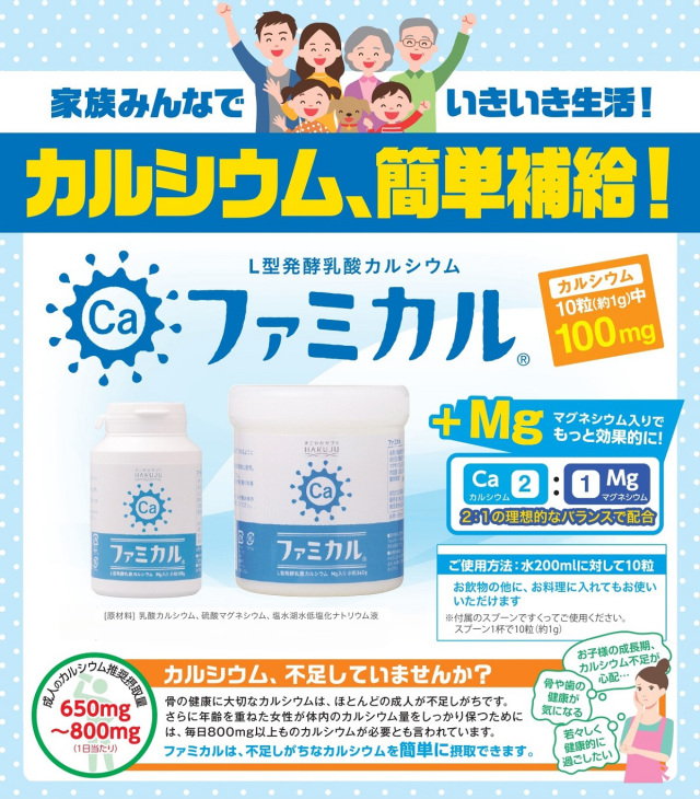『ファミカル』は、カルシウムとマグネシウムを2:1のバランスで配合した、